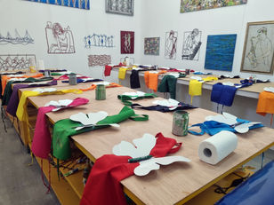 כל משתתף מקבל פרפר עשוי מתכת לצייר עליו בצבעים אקריליים בליווי והדרכה של האמן.